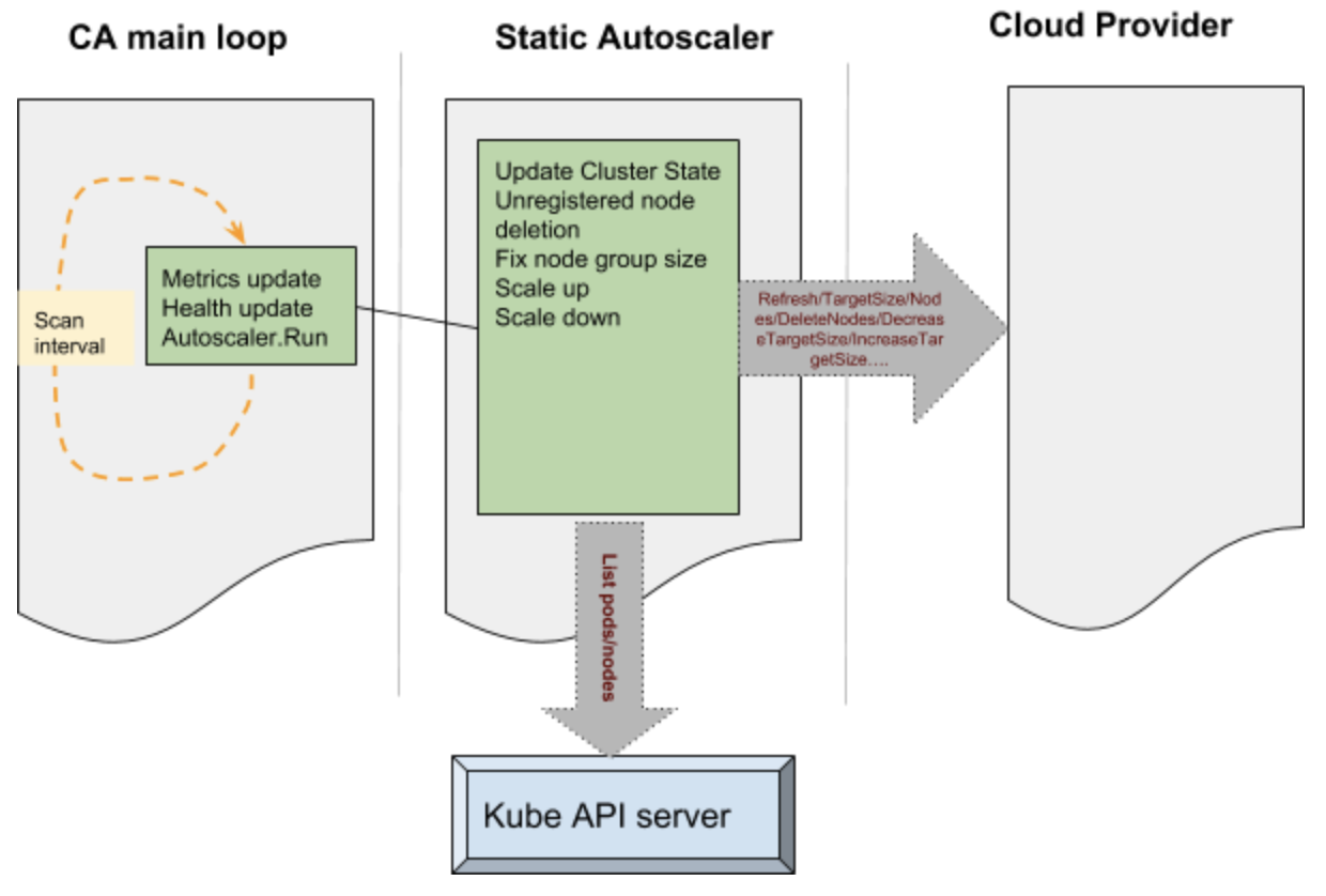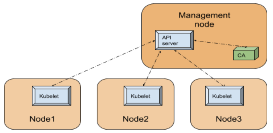 - Single binary, puts lots of pods on each node, and queries each pod to make sure that it is running.
